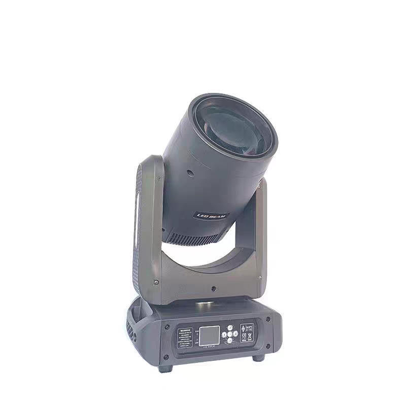 Luz de cabeça móvel LED profissional de 300W com feixe spot, apresentando desempenho óptico avançado e opções de controle versáteis para iluminação de palco e aplicações de entretenimento.