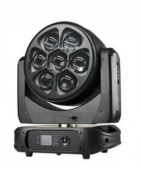 Luz de cabeça móvel LED de lavagem profissional com 7 LEDs RGBW de alta potência com capacidades avançadas de zoom e opções de controle abrangentes para aplicações de iluminação de palco.